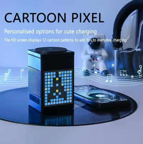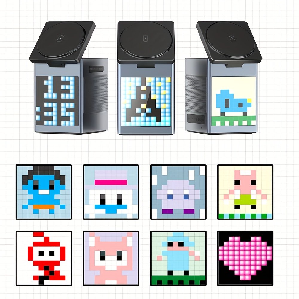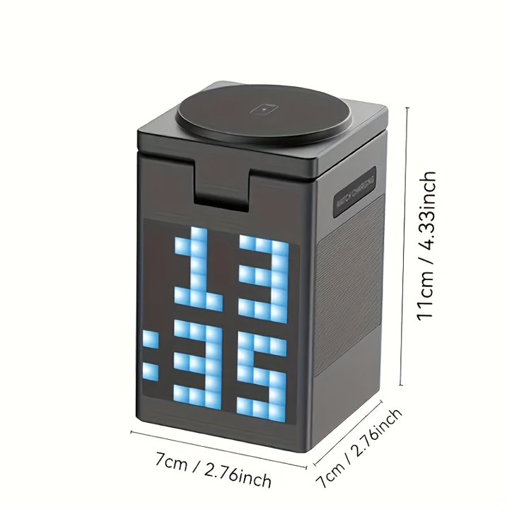 6-in-1 Aluminum Magnetic Wireless Charging Station with LED Pixel display, Bluetooth Speaker, Alarm Clock, for IPhone AirPods IWatch-Multifunction Charger, 15W Fast Charging